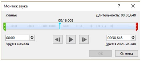 С помощью каких элементов при монтаже звука можно настраивать начало и конец аудиозаписи?