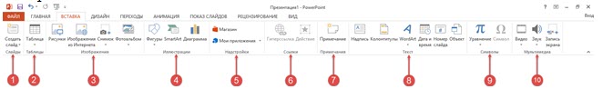 С помощью какой вкладки можно вставить звук в презентацию?