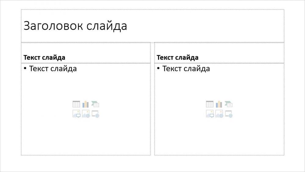 Какие элементы можно добавить на слайд с изображённым на рисунке макетом?