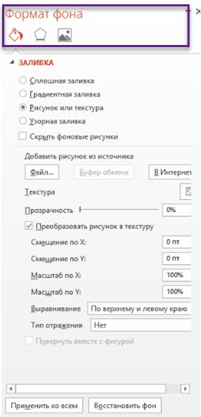 - Устанавливать в качестве фона слайда тип узорной заливки.