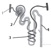 В каком слое почки расположено образование нефрона, обозначенное цифрой 2?