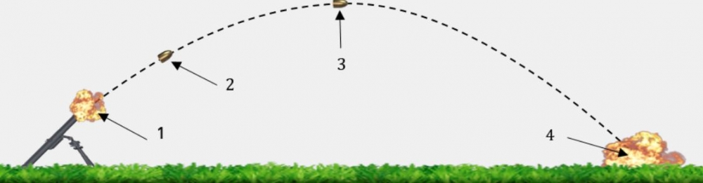 На рис. представлена траектория движения тела, брошенного под углом к горизонту. В какой точке траектории сумма кинетической и потенциальной энергии тела имела максимальное значение?