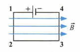 Электричекая цепь, состоящая из четырех прямолинейных горизонтальных проводников (1-2, 2-3, 3-4, 4-1) и источника постоянного тока, находится в однородном магнитном поле, линии которого направлены горизонтально вправо (см. рис., вид сверху).