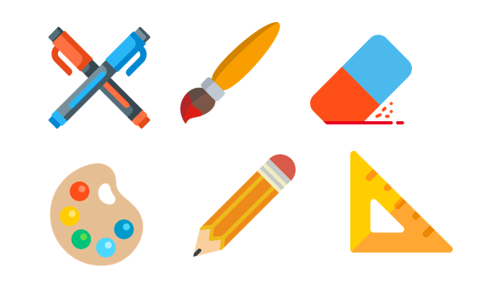 Ich habe (1) ____ Pinsel, (2) ____ Buntstifte, (3) ____ Schultasche, (4) ____ Heft.