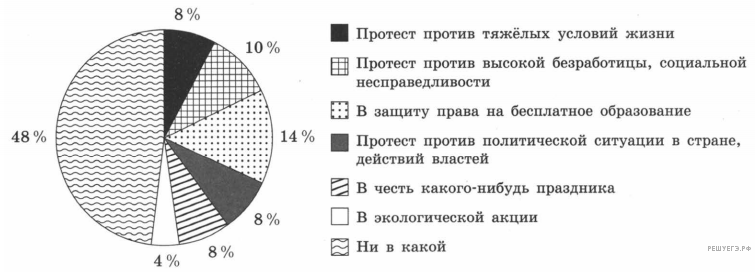 В 2015 г. в стране Z был проведён опрос молодёжи. Участников спрашивали, в каком митинге, демонстрации и т. п. они готовы принять участие.