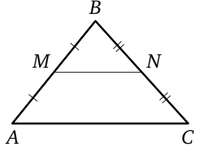 Точки M и N являются серединами сторон AB и BC треугольника ABC, сторона AB равна 21, сторона BC равна 22, сторона AC равна 28. Найдите MN.
