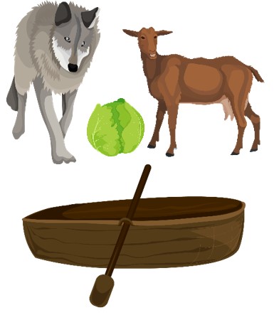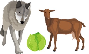 Крестьянин с волком, козой и капустой подошёл к реке. Ему надо переправиться на другой берег, но в лодке вместе с ним может поместиться либо волк, либо коза, либо капуста. При этом нельзя оставлять козу наедине с капустой, а волка наедине с козой. Волку, козу или капусту переправит крестьянин на противоположный берег в первую очередь?