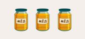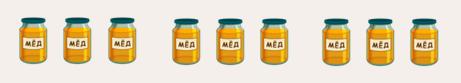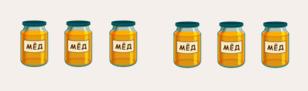 Отметь рисунок, на котором будет баночек с мёдом в 2 раза меньше, чем на этом.