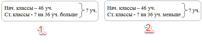 - Если в задаче говорится: "он на... меньше ...", то неизвестное находится действием сложения.