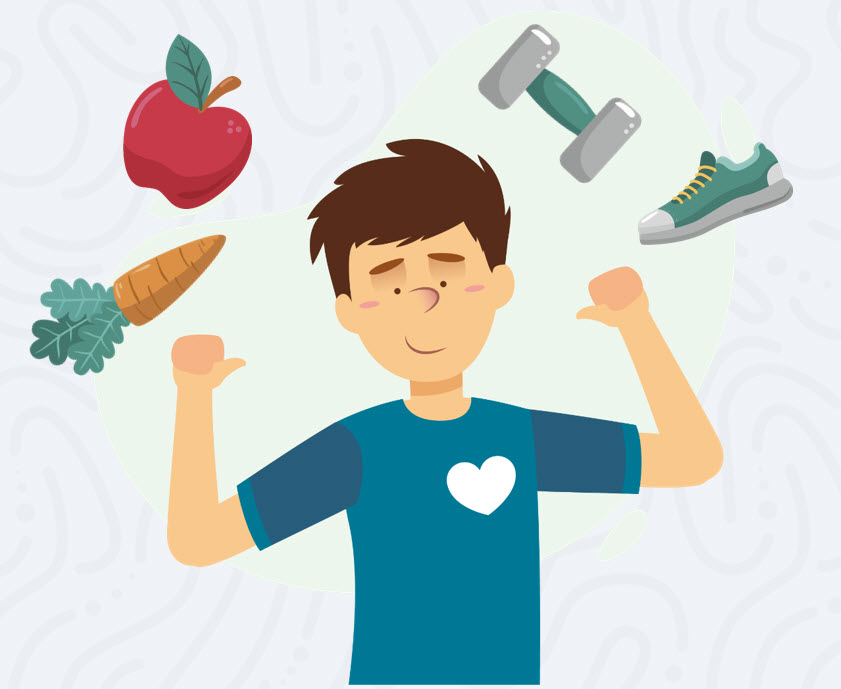 Доработайте слоган "Правильная еда и зарядка приведут здоровье в порядок" так, чтобы он соответствовал рисунку и был запоминающимся. ... достаточно сильно изменять исходную идею.