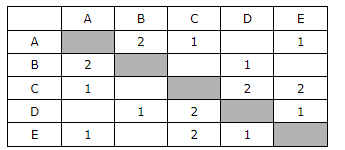 Между населёнными пунктами A, B, C, D, E построены дороги, протяжённость которых в (километрах) приведена в таблице.