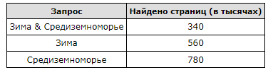 В таблице приведены запросы и количество найденных по ним страниц некоторого сегмента сети Интернет.