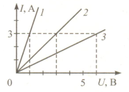 Сопротивление проводника равно 1 Ом. Какой из графиков правильно выражает зависимость силы тока в проводнике от напряжения на его концах?