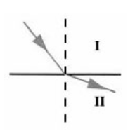 На рисунке показаны падающий и преломленный лучи света. В какой среде — I или II — скорость света меньше?