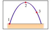 На рис. представлена траектория движения тела, брошенного под углом к горизонту. В какой точке траектории сумма кинетической и потенциальной энергии тела имела максимальное значение?