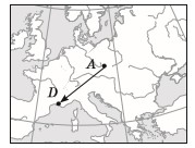 Укажіть за фрагментом контурної карти напрямок руху з точки А до точки D