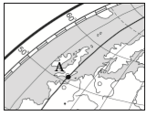 Географічні координати точки А, зображеної на фрагменті контурної карти:
