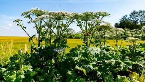 Это растение очень ядовито, опасны его листья, стебли и плоды, а сок вызывает сильнейшие ожоги. Каково его название? В ответе укажите только слово начальной форме. Например, василёк