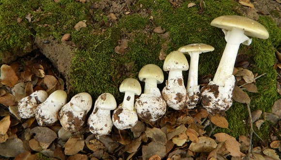 - Главными отличительными признаками бледной поганки являются белые пластинки под шляпкой, белое кольцо и белый разорванный мешочек на ножке.