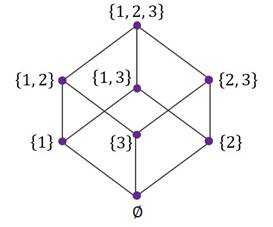 Рёбра этого графа соединяют каждую вершину-множество со всеми его подмножествами на следующем уровне. Двигаясь вниз по рёбрам, можно пройти от каждого множества ко всем его подмножествам. Этот граф напоминает нам кубик.