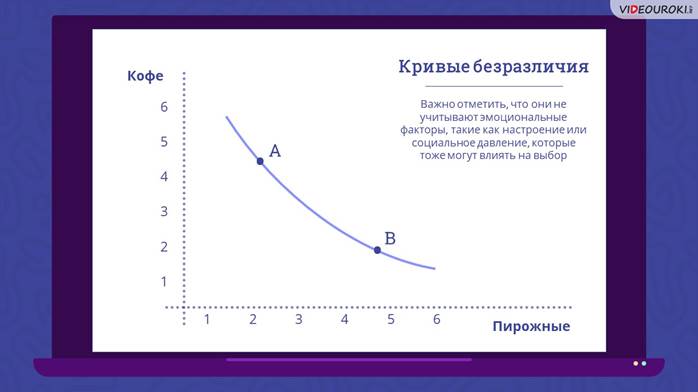 Например, если вы любите кофе и пирожные, то кривая безразличия покажет, сколько чашек кофе вы готовы обменять на одно пирожное, чтобы сохранить уровень удовольствия. Эти кривые помогают понять, как меняются предпочтения человека в зависимости от доступных вариантов. Однако важно отметить, что они не учитывают эмоциональные факторы, такие как настроение или социальное давление, которые тоже могут влиять на выбор.