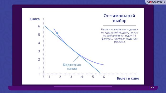 • Оптимальный выбор возникает в точке, где кривая безразличия касается линии бюджетного ограничения. В этой точке человек достигает максимального удовлетворения при текущем уровне дохода. Этот принцип можно наблюдать в повседневной жизни.