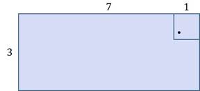 Пример. Рассмотрим случайный эксперимент, в котором из прямоугольника со сторонами 7 и 3 выберем случайную точку. Какова вероятность того, что эта точка попала, например, в правый верхний квадрат со стороной 1?