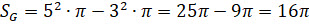 Фигурой G является внешняя зона, то есть кольцо, у которого радиус внешней окружности равен 5 см, а внутренней – 3 см. Тогда площадь фигуры G найдём как разность площади круга с радиусом 5 см и площади круга с радиусом 3 см.
