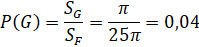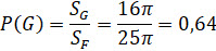 Найдём вероятность того, что стрелок попал в центральную зону мишени, как частное площади фигуры G и площади фигуры F.