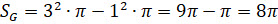 Фигурой G в данном случае является средняя зона, то есть кольцо, у которого радиус внешней окружности равен 3 см, а внутренней – 1 см. Тогда площадь фигуры G найдём как разность площади круга с радиусом 3 см и площади круга с радиусом 1 см.
