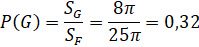 Найдём вероятность того, что стрелок попал во внешнюю зону мишени, как частное площади фигуры G и площади фигуры F.
