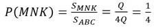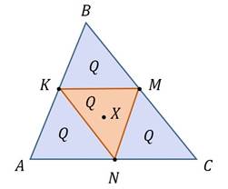 Интересующее нас событие состоит в том, что точка X принадлежит треугольнику MNK. Вероятность этого события найдём как частное площади треугольника MNK и площади треугольника АВС.
