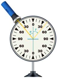 Для начала воспользуемся специальным устройством – оптической шайбой. Этот прибор оснащён источником света (лампа в корпусе с отверстием), который создаёт узкий пучок света. Свет направляется вдоль круглого экрана, называемого диском, где по краю нанесены градусы. В центре диска устанавливается преграда, от которой свет будет отражаться.