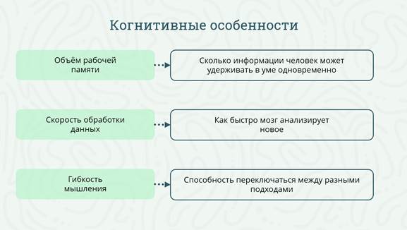 У каждого человека свои когнитивные особенности. От них зависит следующее:
