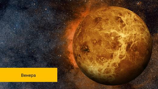 Следующая планета земной группы ― это Венера. Своё название она получила в честь древнеримской богини любви и красоты. И это не случайно. На небе она сияет ярче всех звёзд и хорошо видна невооружённым глазом. Среднее расстояние её от Солнца 108 млн км.