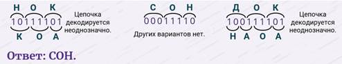 В задании требуется найти ту цепочку, которая может быть декодирована однозначно.