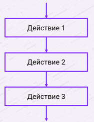 У линейного алгоритма только один вход и только один выход, попасть из первого действия, например, в третье невозможно.