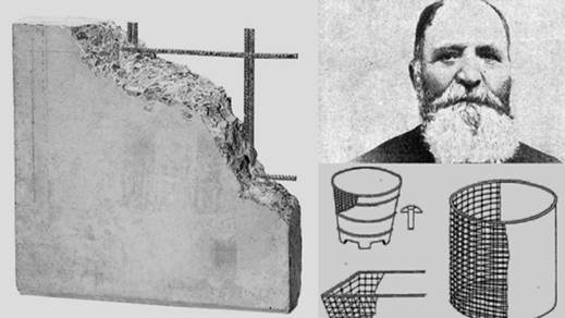 Интересно, что патент на железобетон получил обычный садовник Жозеф Монье, которого не устраивали деревянные кадки для растений, а бетонные рассыпались из-за роста корней. Поэтому для увеличения стойкости своих бетонных кадок Монье придумал вставлять в них металлические вкладыши.