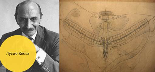 На плане Бразилиа одновременно похож и на крест, и на самолёт, и на птицу в полёте. Сам Коста говорил о бабочке. Главным архитектором административных и общественных зданий, которые считаются шедеврами архитектуры XX века, стал пионер и экспериментатор в области железобетонной архитектуры Оскар Нимейер.