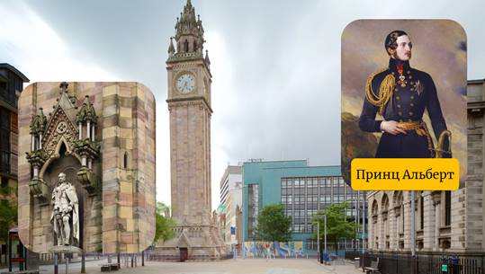 Башня с часами расположена на Королевской площади Белфаста. Это сооружение возводилось королевой Викторией в память о супруге, принце Альберте.