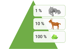 Подсчитано, что на рост идёт около 10 % усвоенной энергии. Следовательно, в теле козы задержится даже менее десятой части энергии, заключённой в кочане капусты, так как часть вещества не усваивается. Когда же волк съест козу, то на рост его тела также достанется 1 процент энергии, которая первоначально была в капусте.