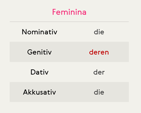 Wollen wir die Deklination der Relativpronomen anschauen!