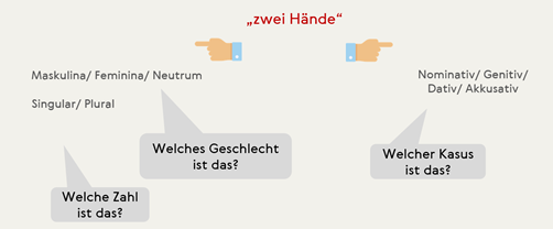 Die zweite Hand nach rechts: Hier steht die Frage: Welcher Kasus ist das?