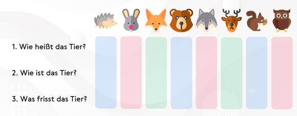 Füllt die Tabelle aus! Wie sind die Tiere?
