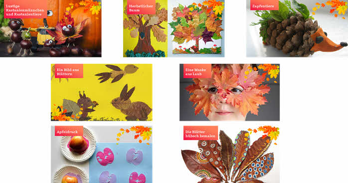 Lino: Das ist ein Buch „Im Herbst basteln“. Ja, der Sommer ist vorbei, aber im Herbst kann man viele tolle Sachen machen! Schau mal! Hier sind die Kastanienleute! Und das ist eine Blätterkrone!