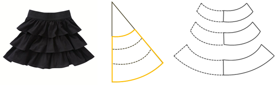 А теперь давайте посмотрим, как на основе конической юбки можно сделать юбку с оборками.