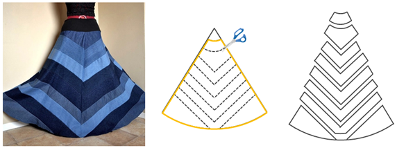 Еще коническую юбку можно выполнить и в лоскутной технике. Давайте посмотрим, как это делают.