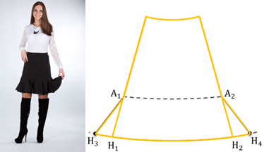 Первой рассмотрим последовательность моделирования юбки, расширенной книзу, с кокеткой спереди.