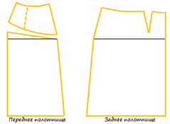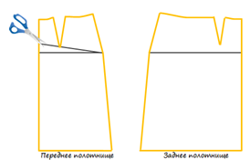 Для этого нужно увеличить ширину переднего полотнища по линии низа со стороны бокового среза на три сантиметра.