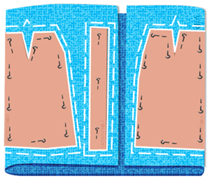 При настиле в разворот ткань необходимо развернуть во всю ширину и разложить лицевой стороной вниз. Можно разложить ее в два слоя, лицевой стороной внутрь. Этот способ можно применять для настила тканей любой ширины.